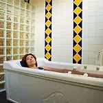 Οι πελάτες μπορούν να χαλαρώσουν στην πισίνα.
